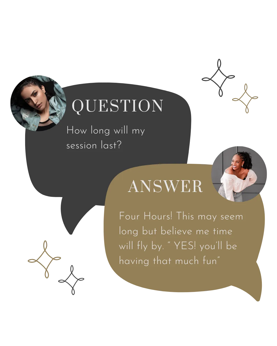choose the package you desire, fill out the order form, choose your date, look for all of the preparation material in your email. Finally, come in and have the photoshoot of your dreams.